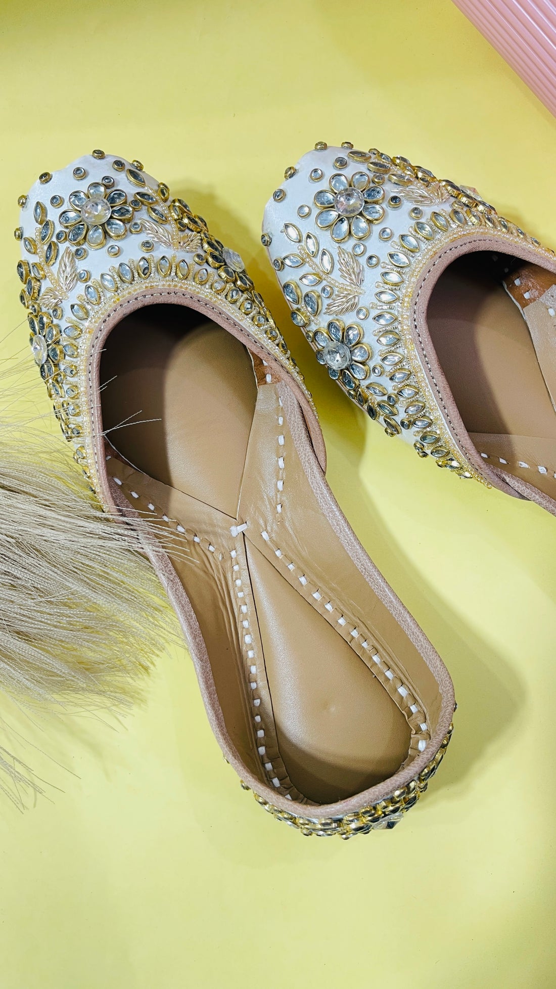 Royal Radiance: Hand-Embellished Juttis ~ Cream