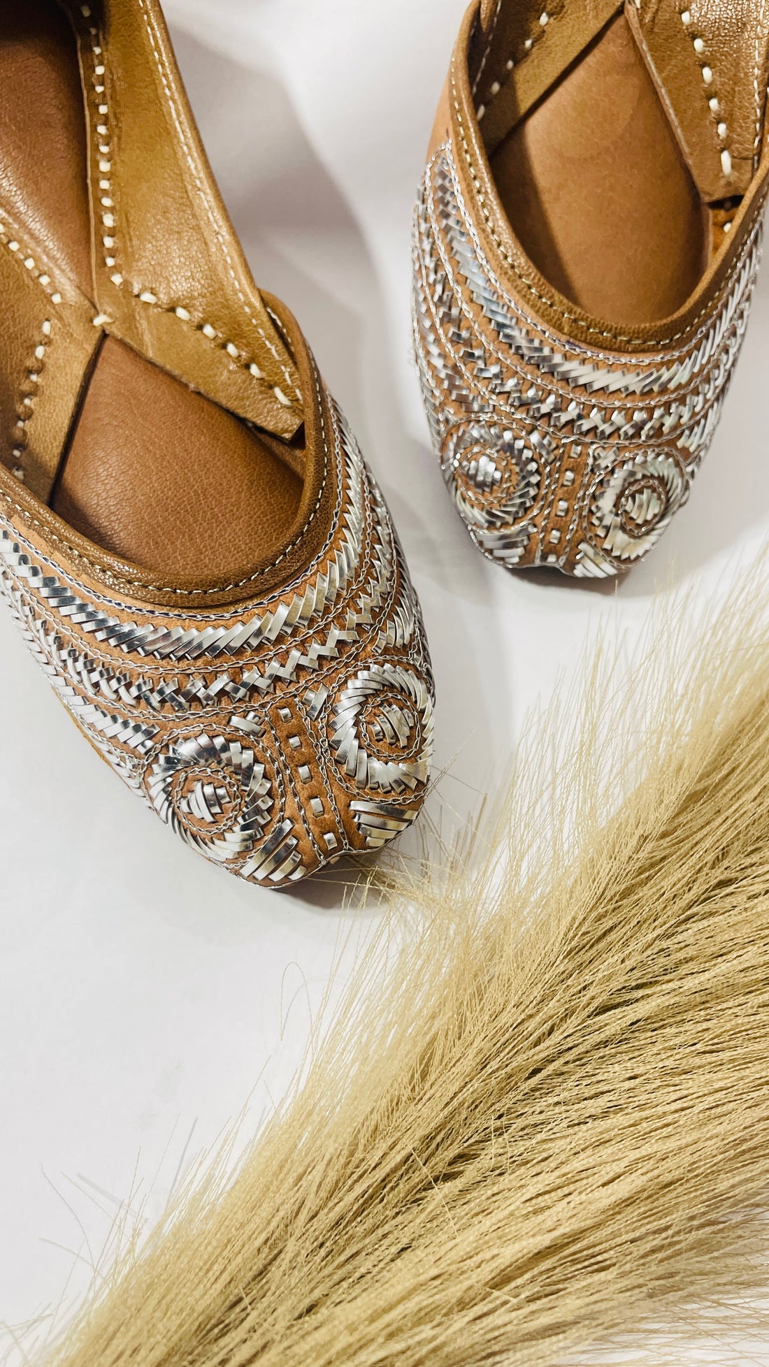 • Clean lines, classic tan, and a hint of detail — these juttis are made...