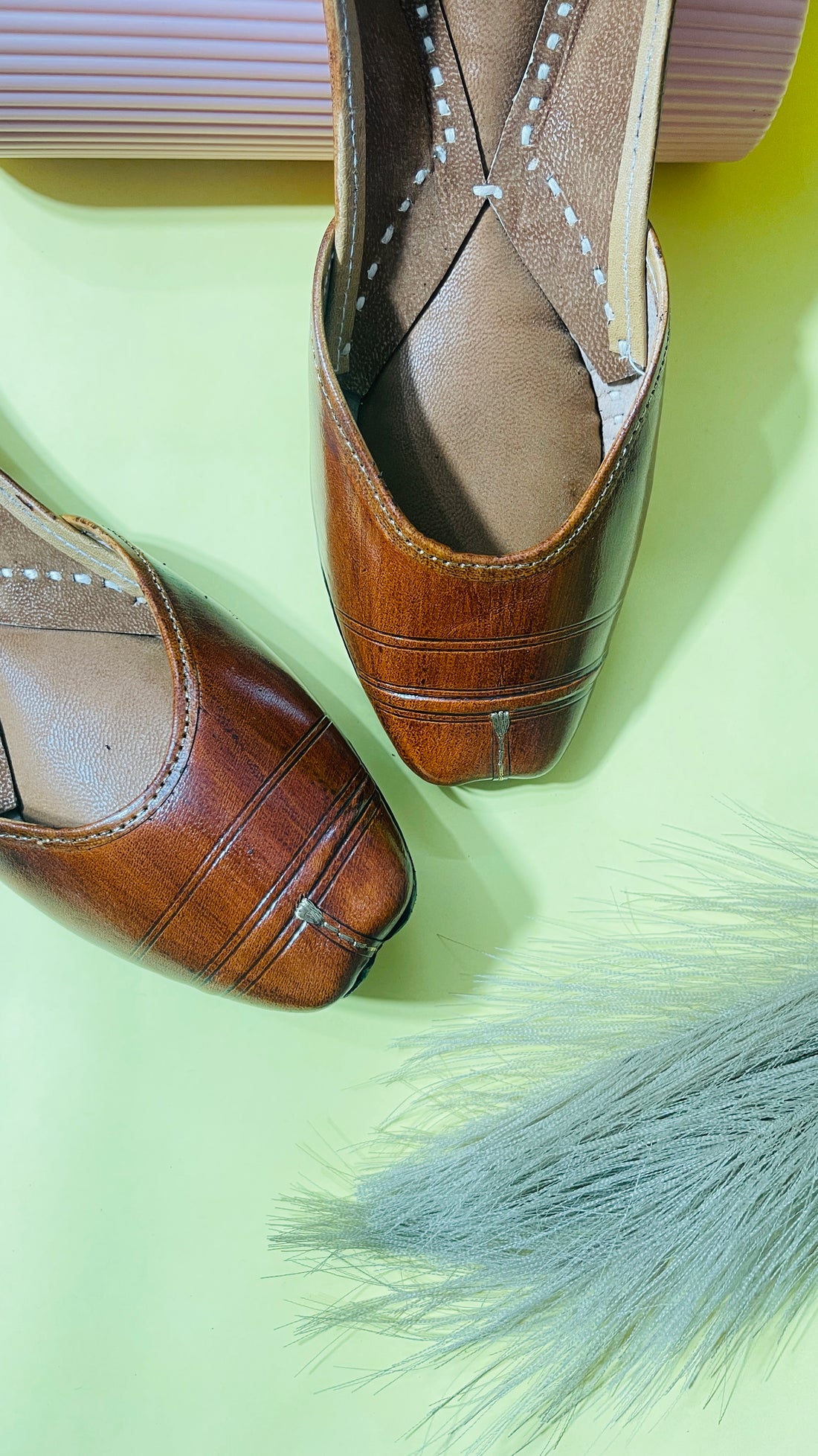 For those who love understated elegance, these juttis are crafted in a rich tan-brown leather...