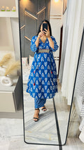 Blue Angrakha Kurta Set