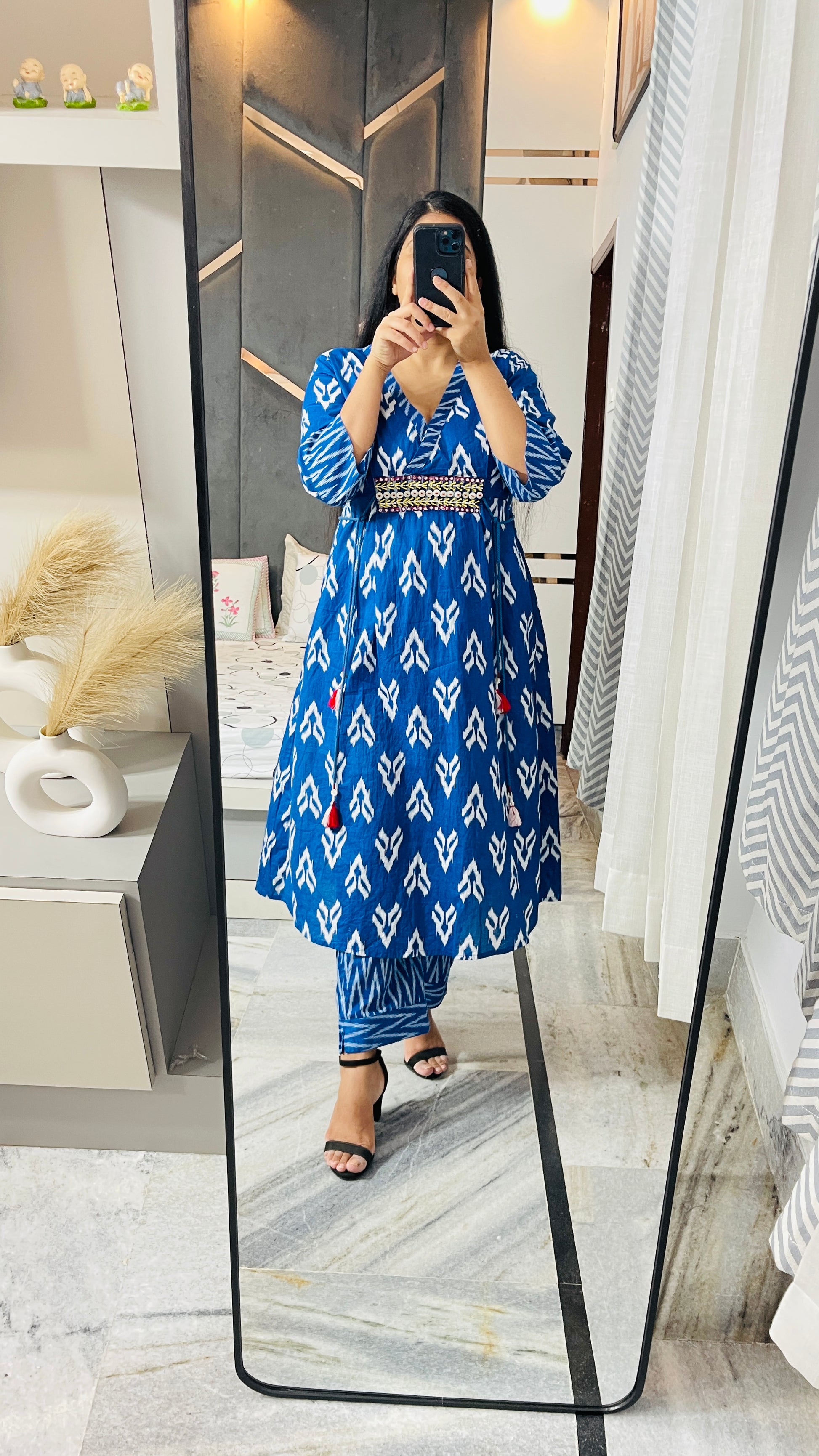 • A-line Angrakha kurta with a playful print