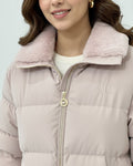 Blush Pink Cropped Puffer Jacket with Plush Faux-Fur Collar
