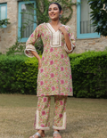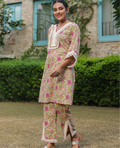 Elevate your everyday look with our pure cotton coord set, featuring delicate lace detailing on the neckline, sleeves, and chic slits on the pants. Effortlessly elegant, perfect for any occasion !!
