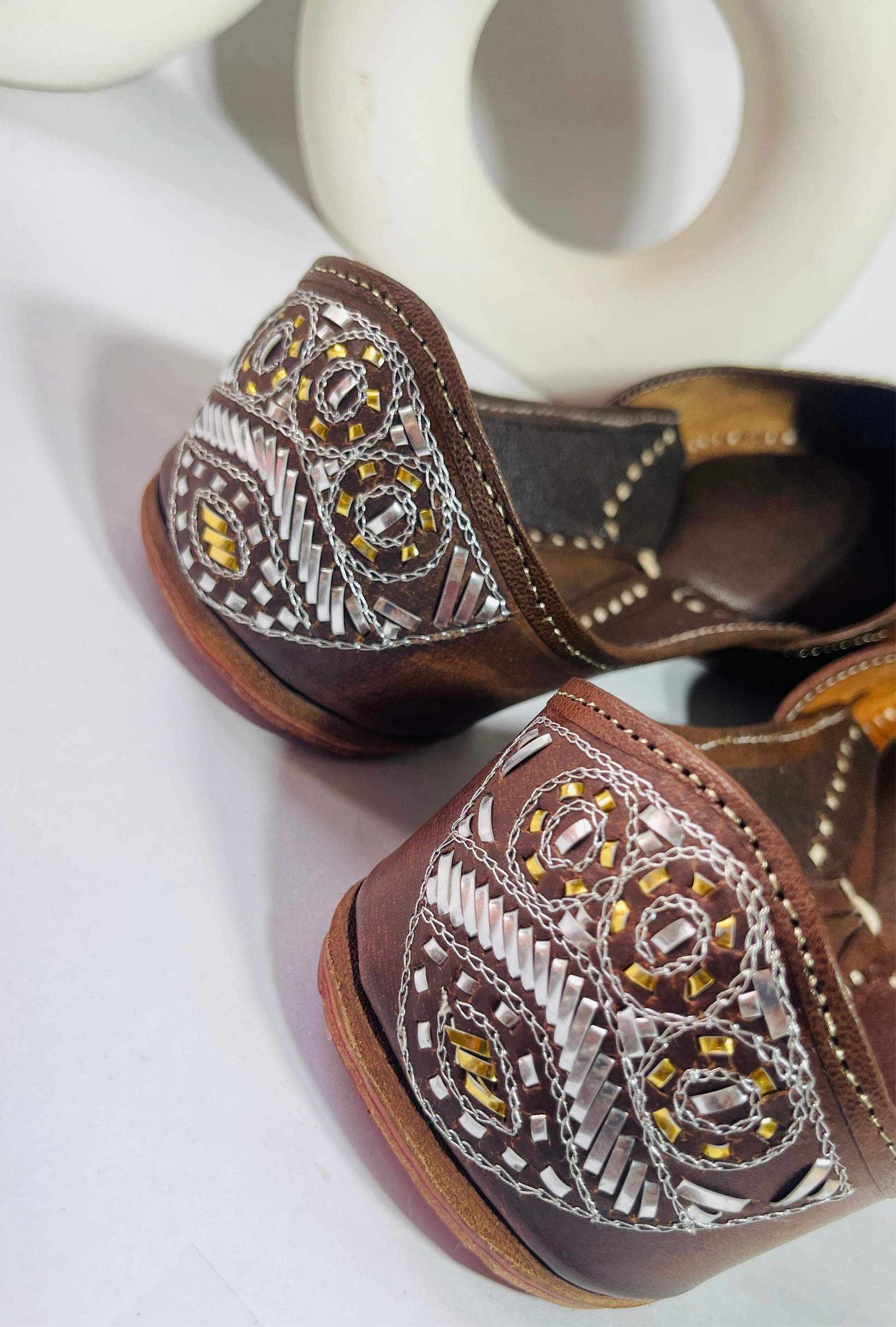 Brown Mukaish Work Juttis