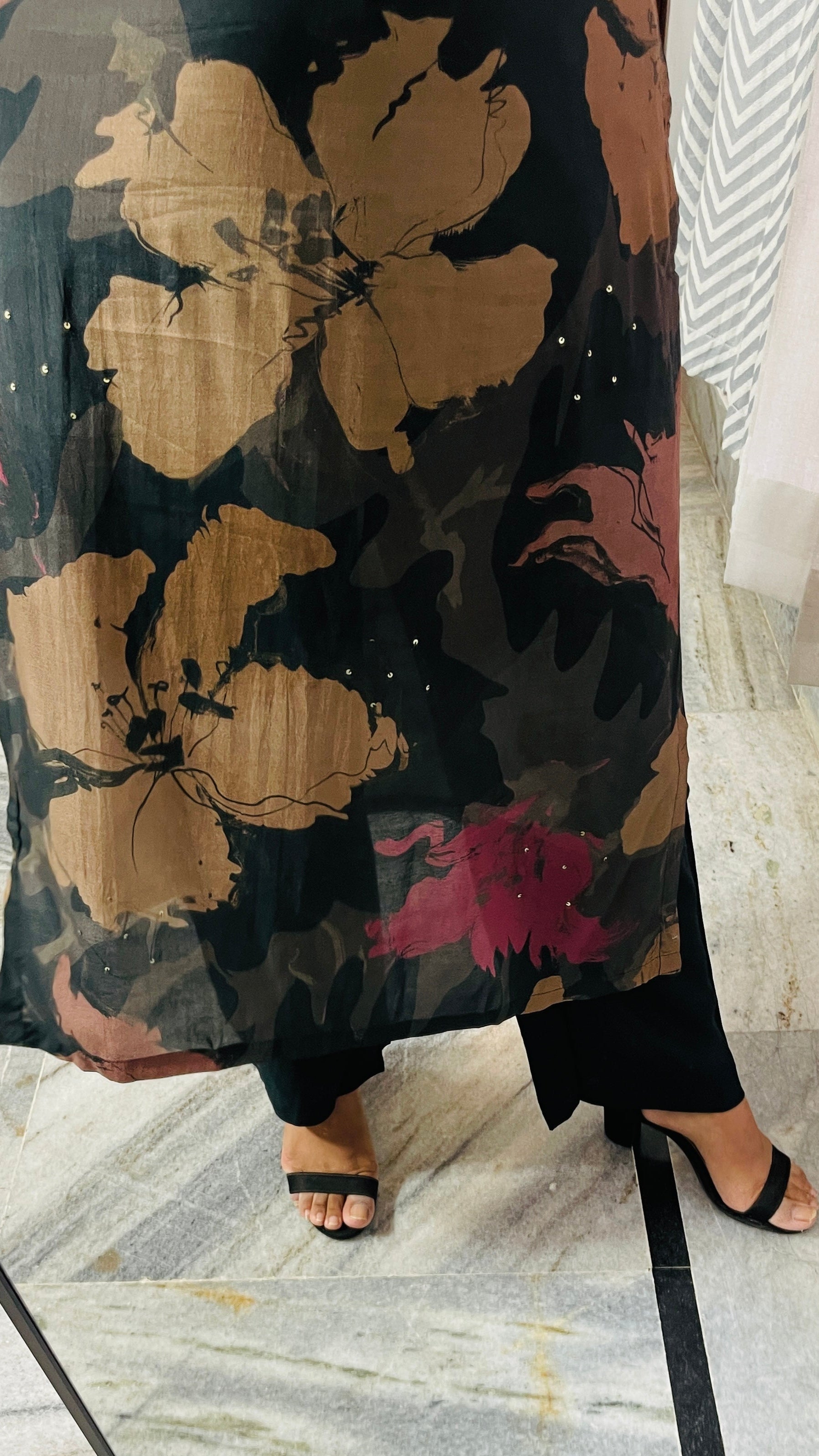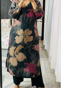 Floral Print Muslin Kurta Set - Black