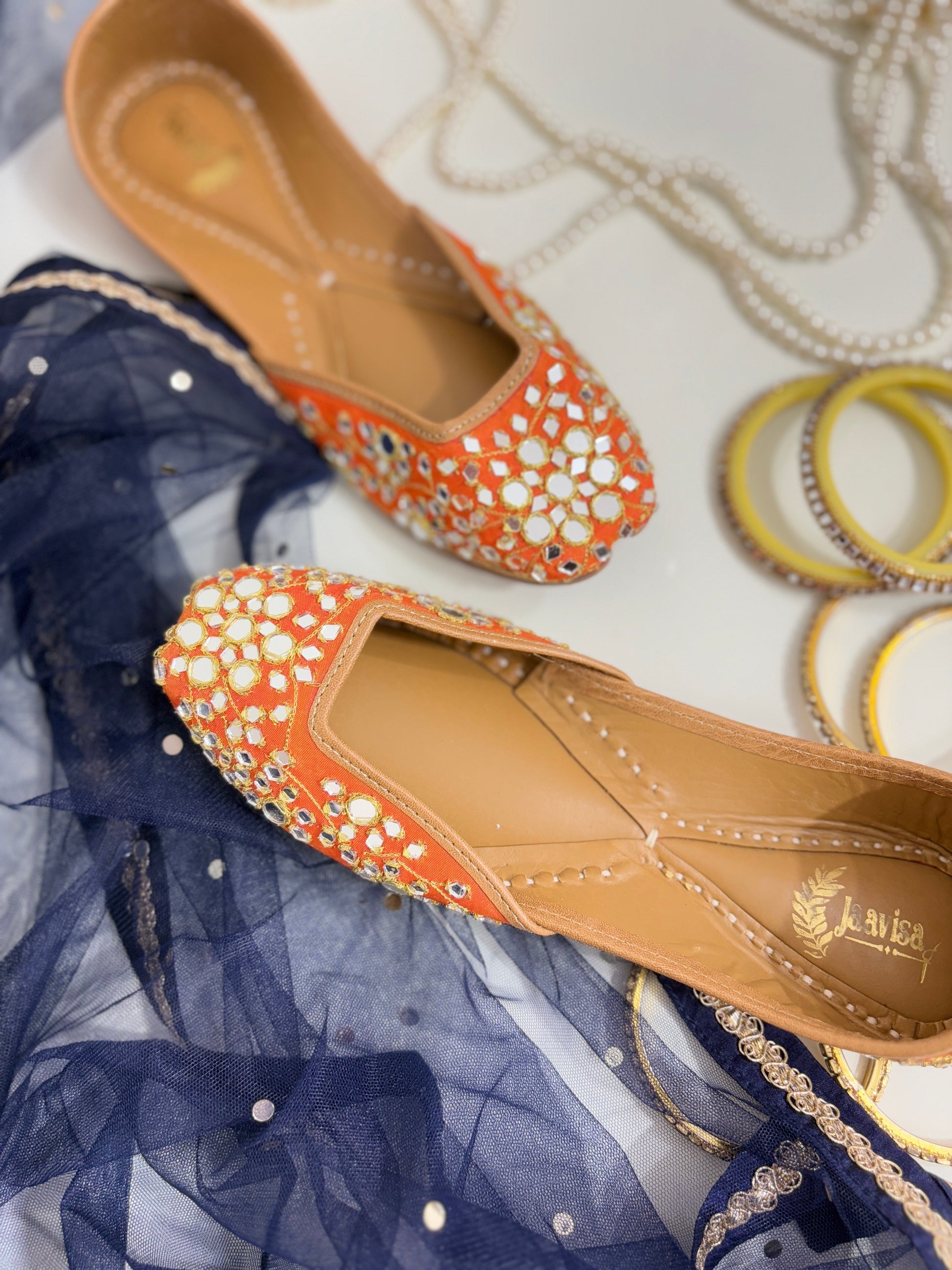 Mirror Magic: Handcrafted Orange Juttis