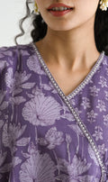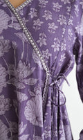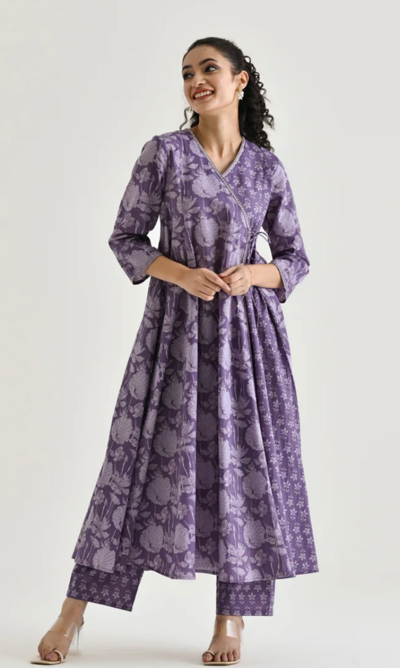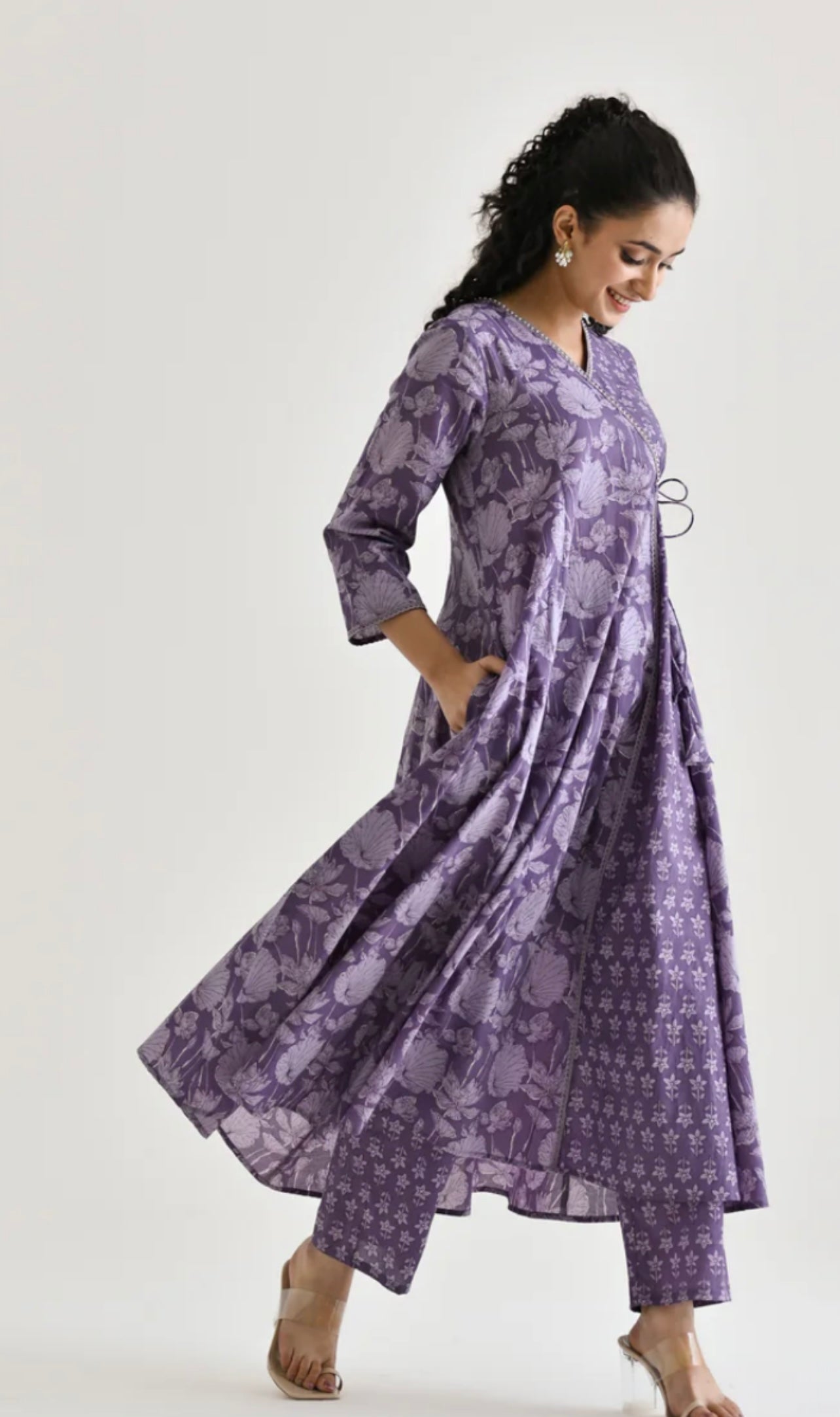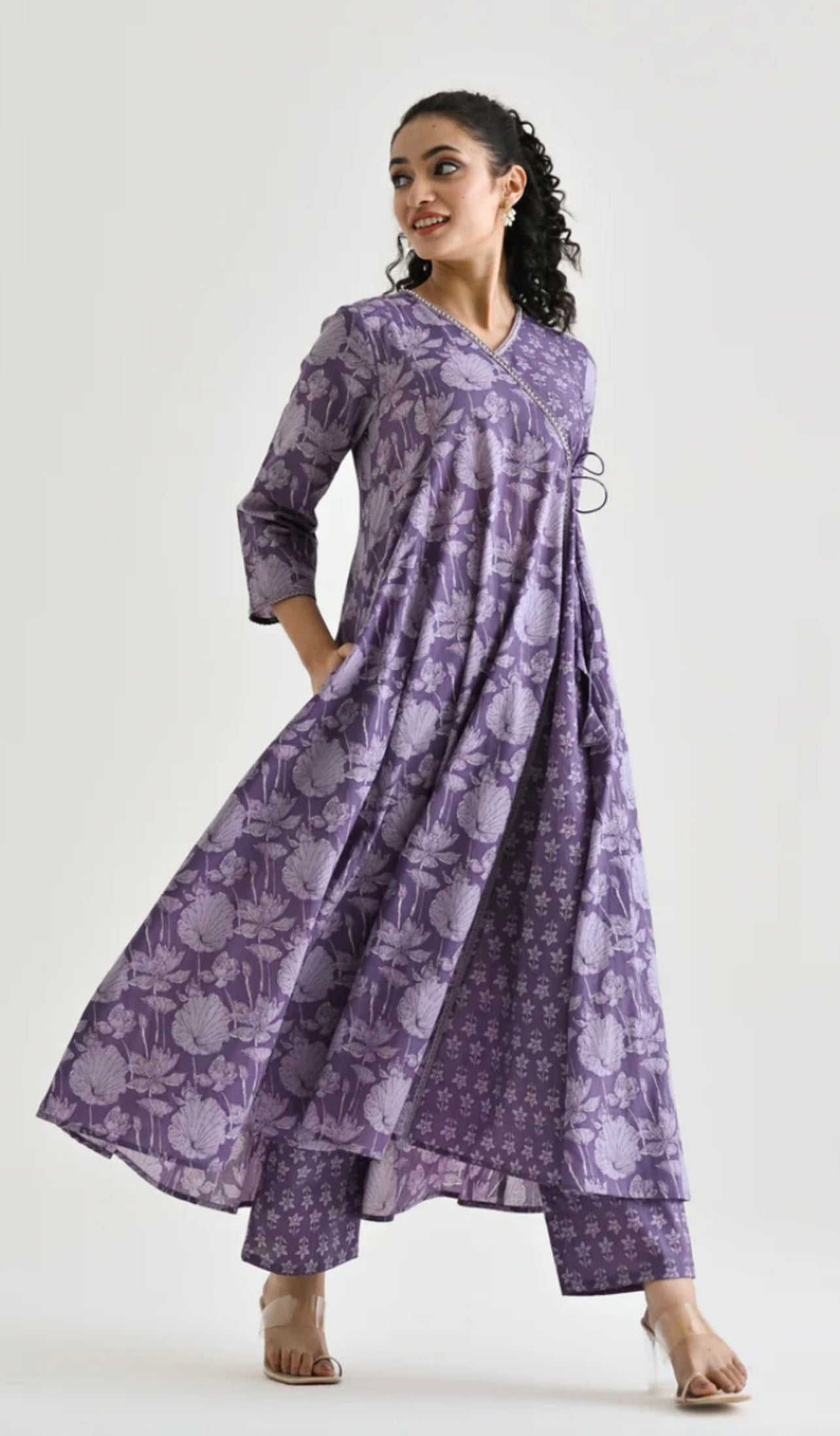 Royal Bloom: Purple Angrakha Anarkali Adorned in Block Print Heritage