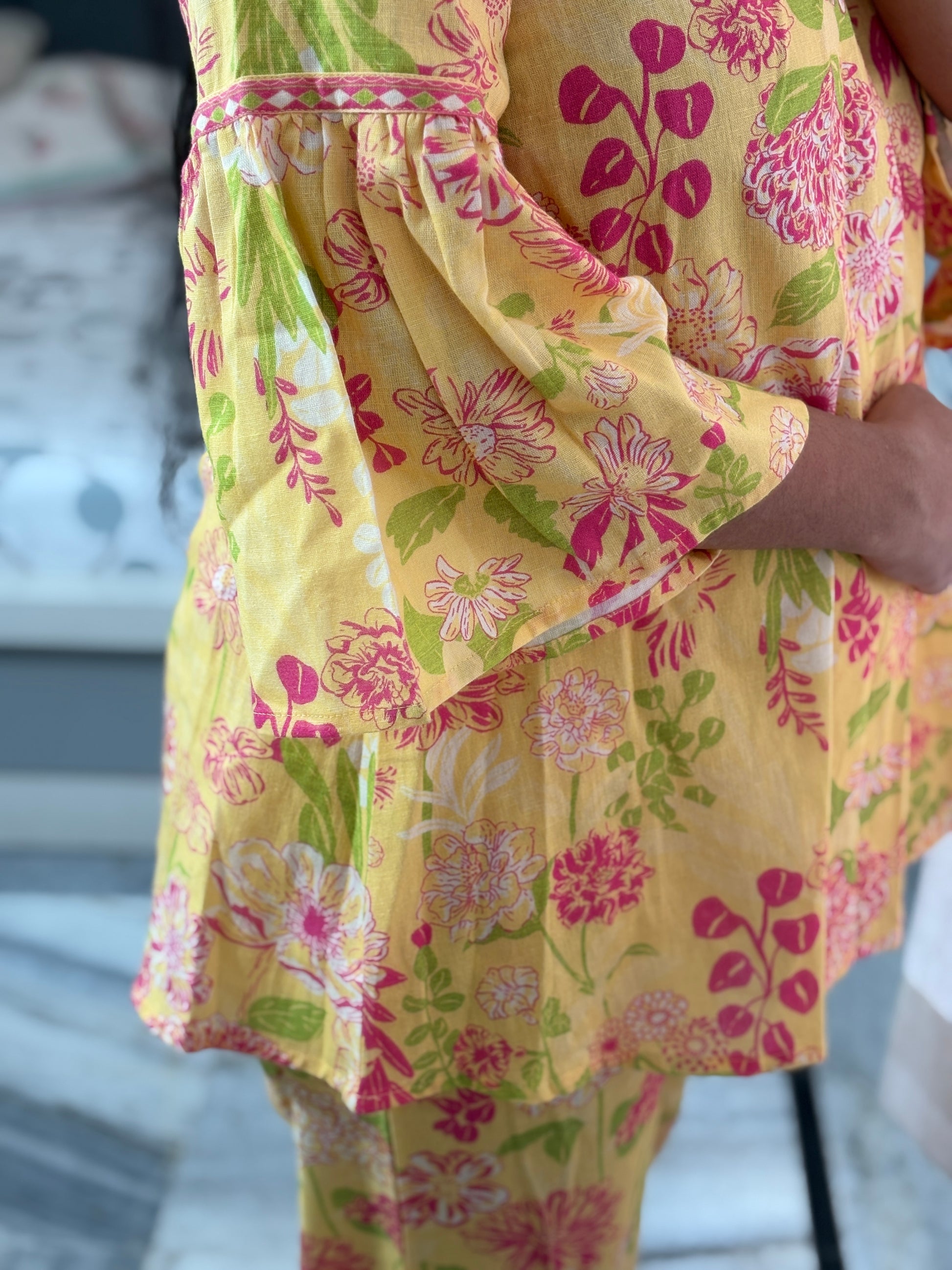 Adorned with colorful floral prints in soothing yellow shades, it’s lightweight, comfy, and effortlessly chic. Your go-to pick for sunny brunches, vacations, and easy everyday glam !!